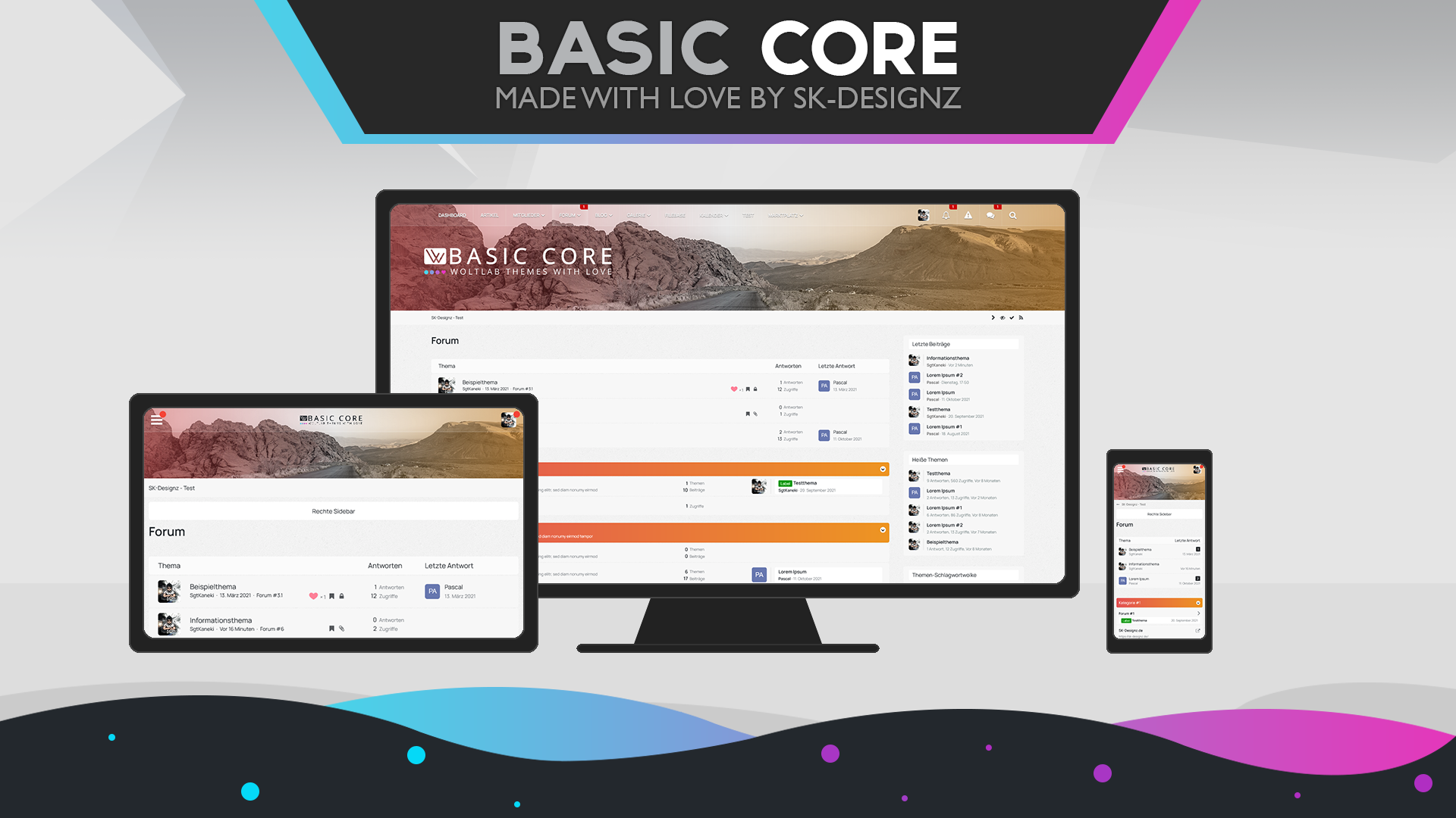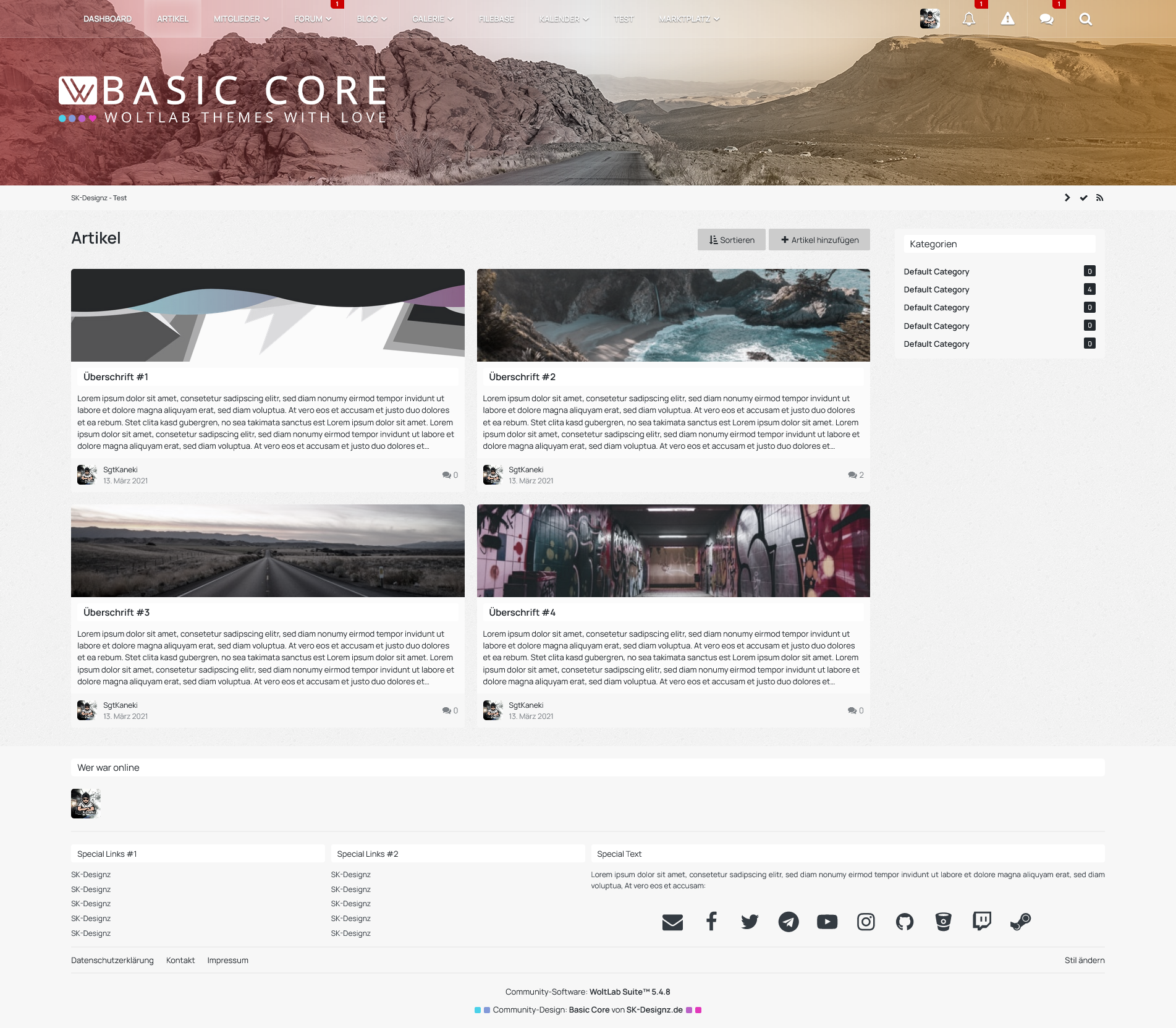 Anmelden oder registrierenDas "Basic Core"-Design verbessert nicht nur das Standard-Design in vielerlei Hinsicht sondern verbessert ebenfalls den ersten Eindruck Ihrer Seite, heben Sie sich von anderen Projekten durch dieses Design ab und individiualisieren Sie das Design nach Ihren Wünschen und den Wünschen Ihrer Community. Das Design wurde insbesondere im Hinblick auf die Kompatibilität zu Smartphones und Tablet's speziell angepasst und entwickelt (Responsive) - um sowohl am Computer, als auch unterwegs auf den mobilen Endgeräten immer eine gute Figur abzugeben.