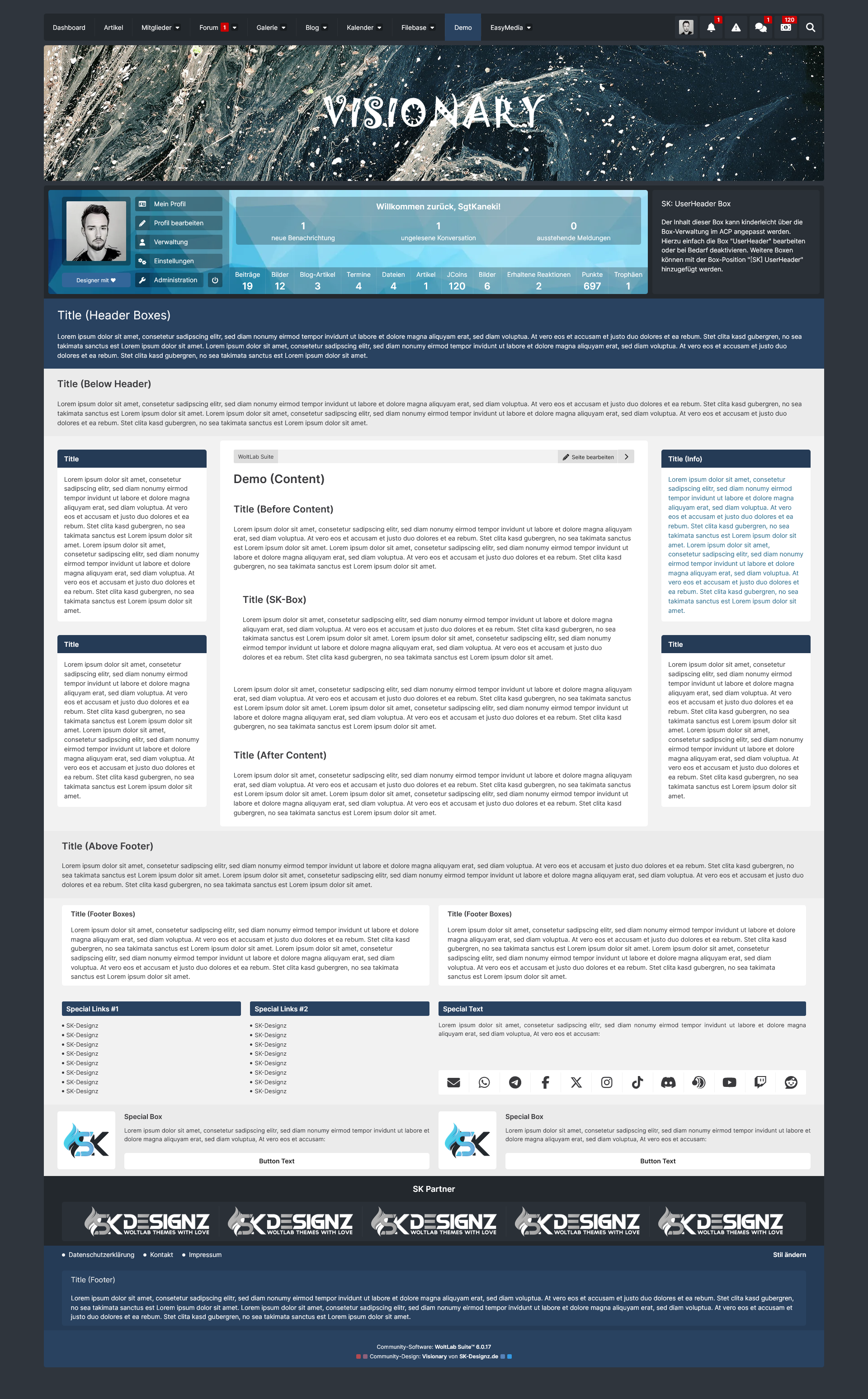 Sämtliche zusätzlichen Boxen / Features können einzeln und getrennt voneinander abgeschaltet / deaktiviert werden. Passen Sie Ihr Design nach Ihren Wünschen an!