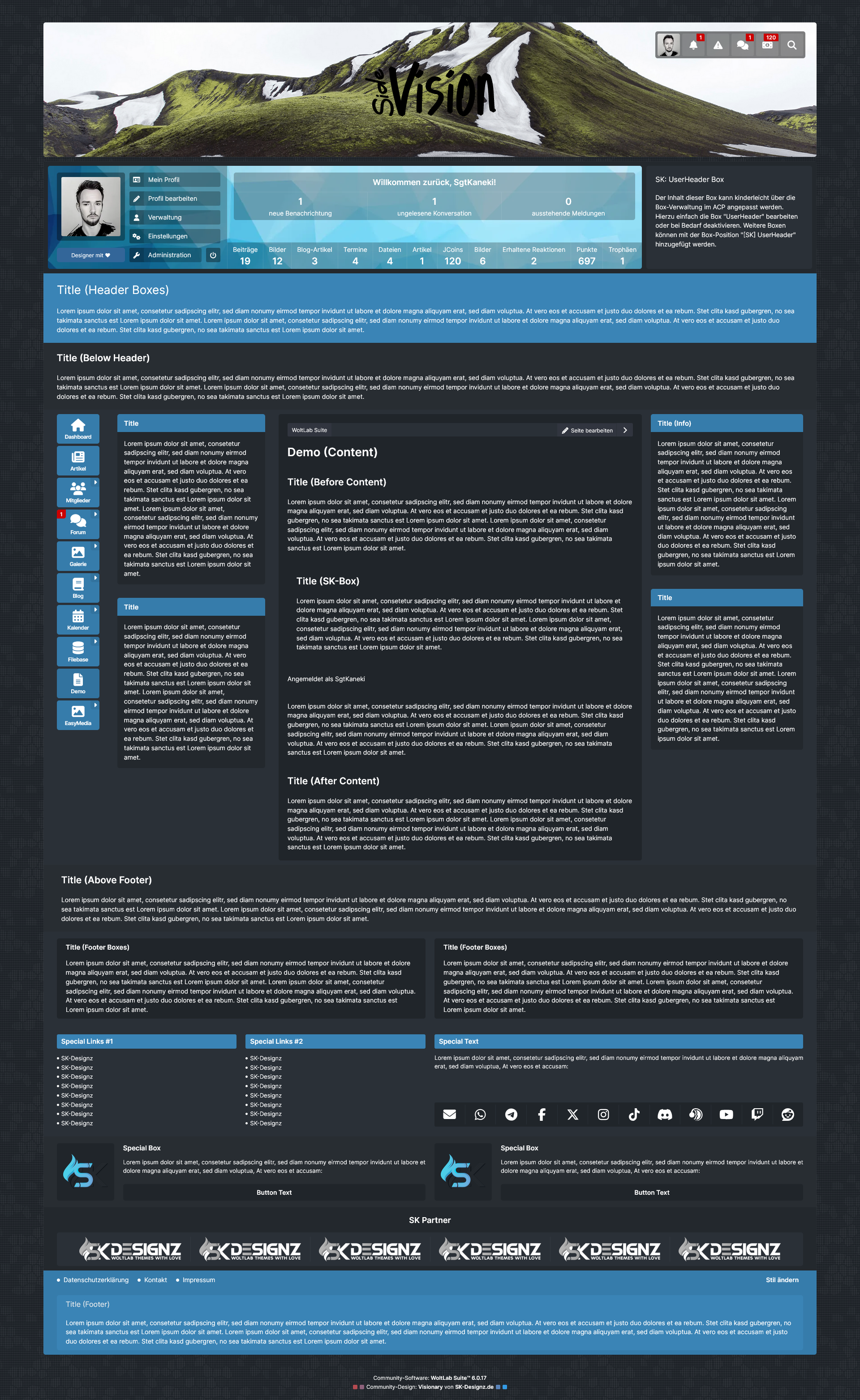 Sämtliche zusätzlichen Boxen / Features können einzeln und getrennt voneinander abgeschaltet / deaktiviert werden. Passen Sie Ihr Design nach Ihren Wünschen an!
